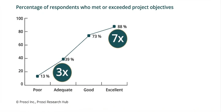 Die Forschungsdaten von Prosci zeigen ein klares Muster — und eine wichtige Botschaft, die ich Ihnen nicht vorenthalten möchte: